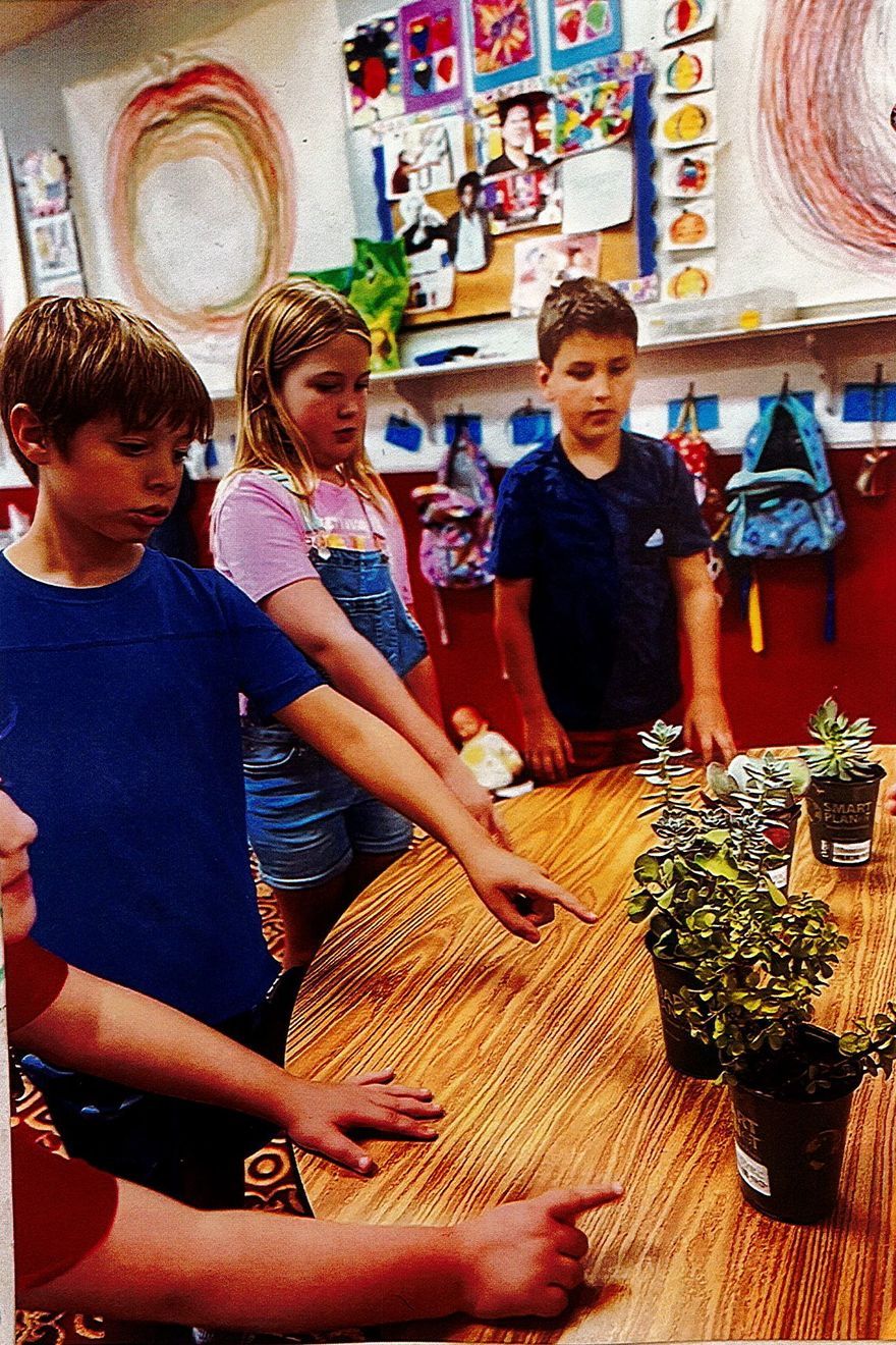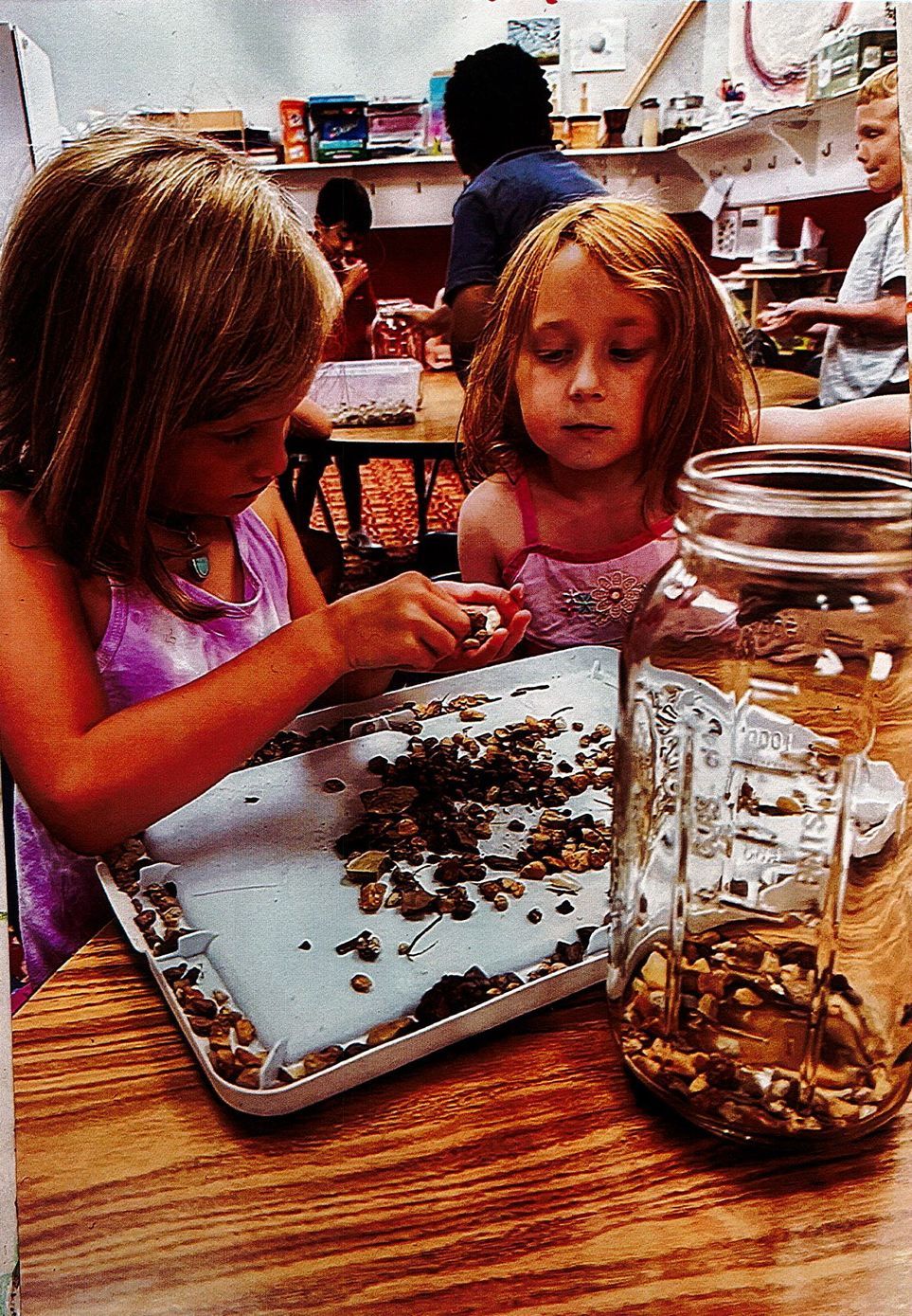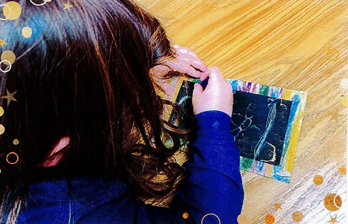 in this project, students learned the purpose of layers and how they pertain to Earth. They were tasked with an exercise to layer different mediums on cardstock in an effort to later reveal those layers by subtraction. The students were exposed to low and high-tech by being allowed to choose a variety of tools to remove paint and a tablet to view interactive videos and understand the purpose of layers more intuitively.